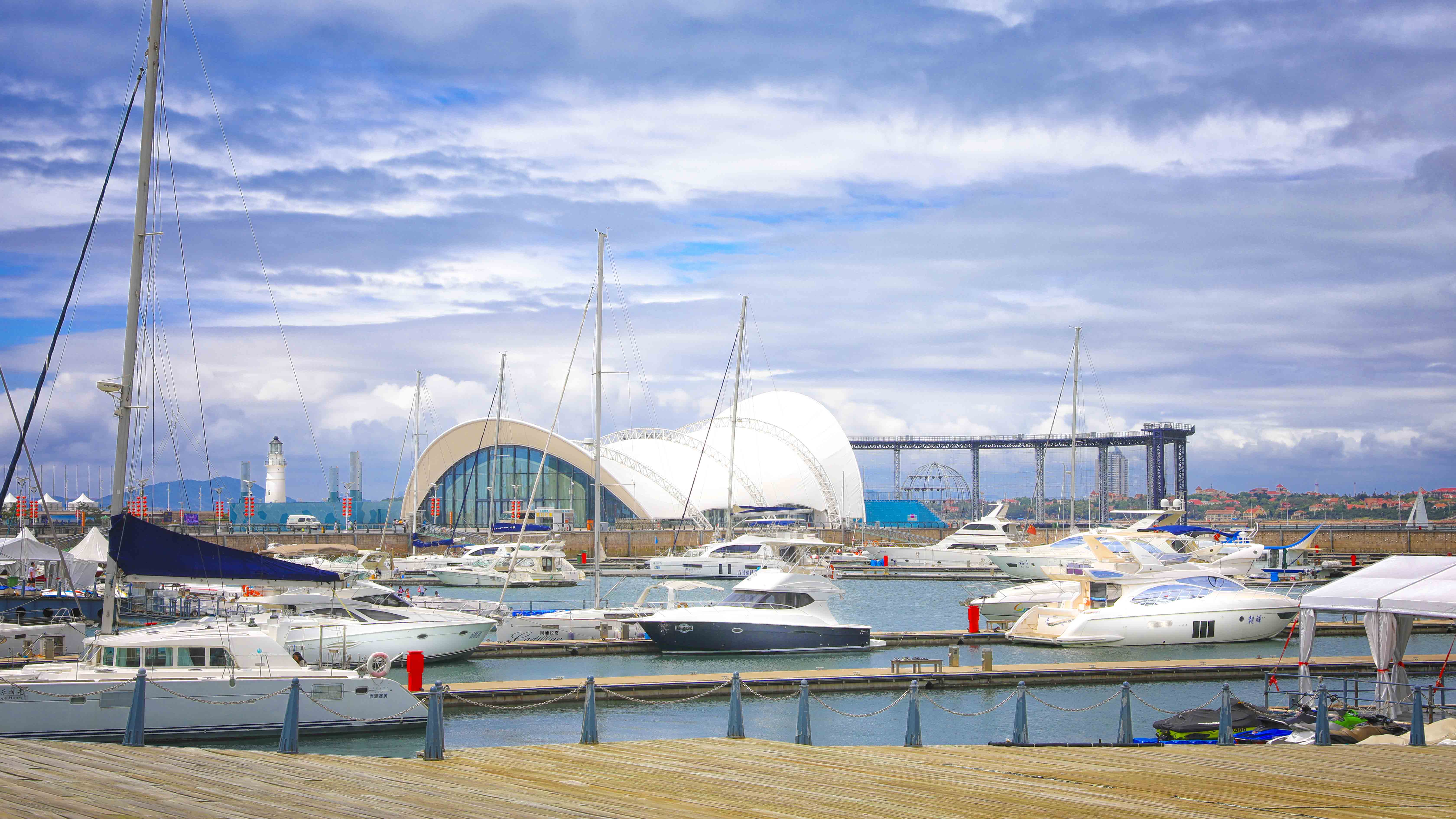 本項目在保留原有建筑主體結(jié)構(gòu)的基礎(chǔ)上,結(jié)合本次會議活動的相關(guān)需求,對其規(guī)模、形象、功能進(jìn)行改造提升。主題材料采用輕盈的鋼結(jié)構(gòu)與膜結(jié)構(gòu),造型宛如海浪中靈動的風(fēng)帆,彰顯青島這座海洋名稱、帆船之都的獨特魅力。
