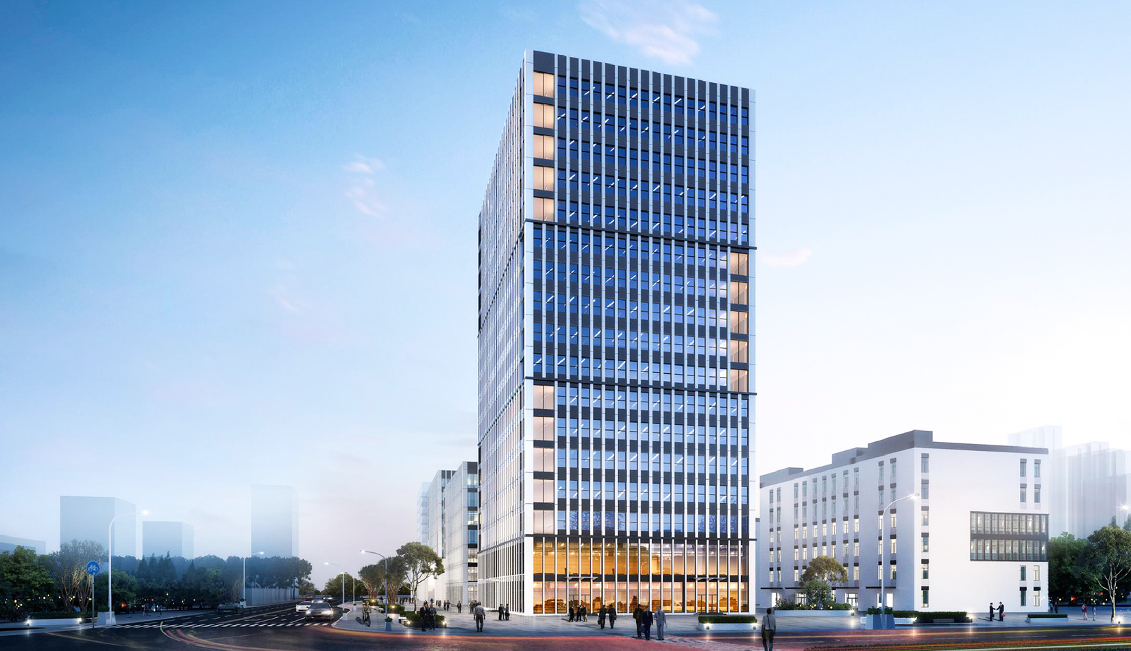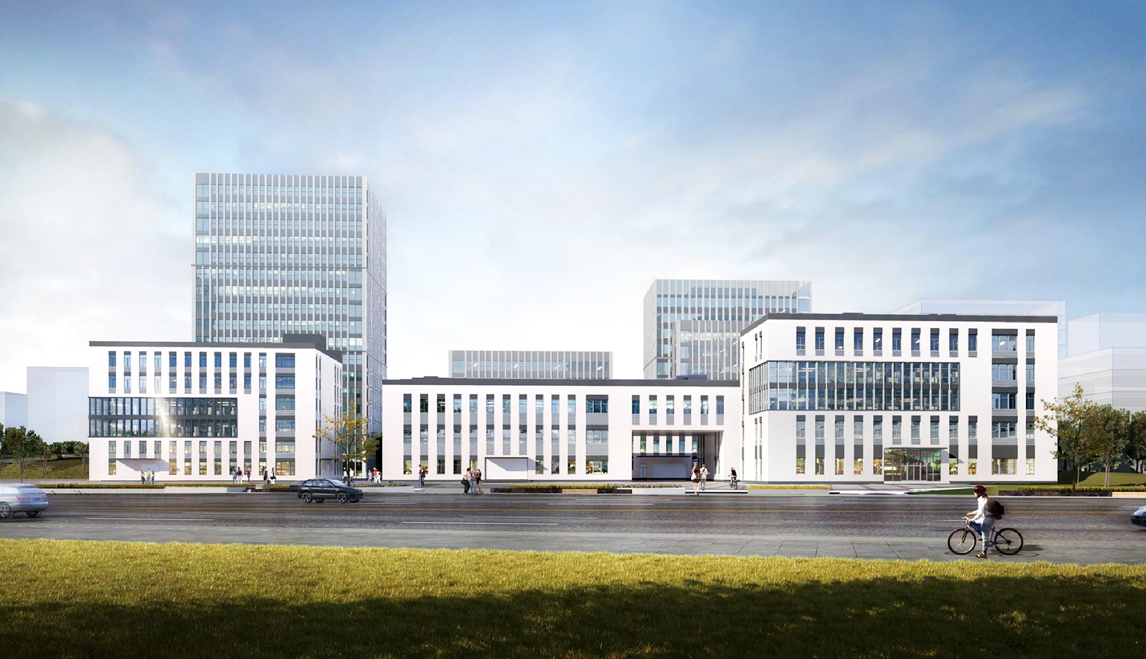 多組團(tuán)——以園區(qū)道路劃分為多個(gè)工業(yè)組團(tuán)空間,分為多層生產(chǎn)制造組團(tuán)、高層生產(chǎn)研發(fā)組團(tuán)以及園區(qū)配套辦公組團(tuán)。